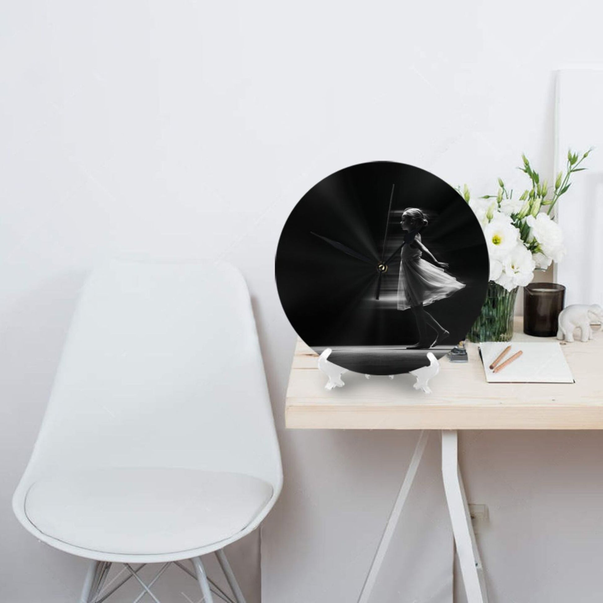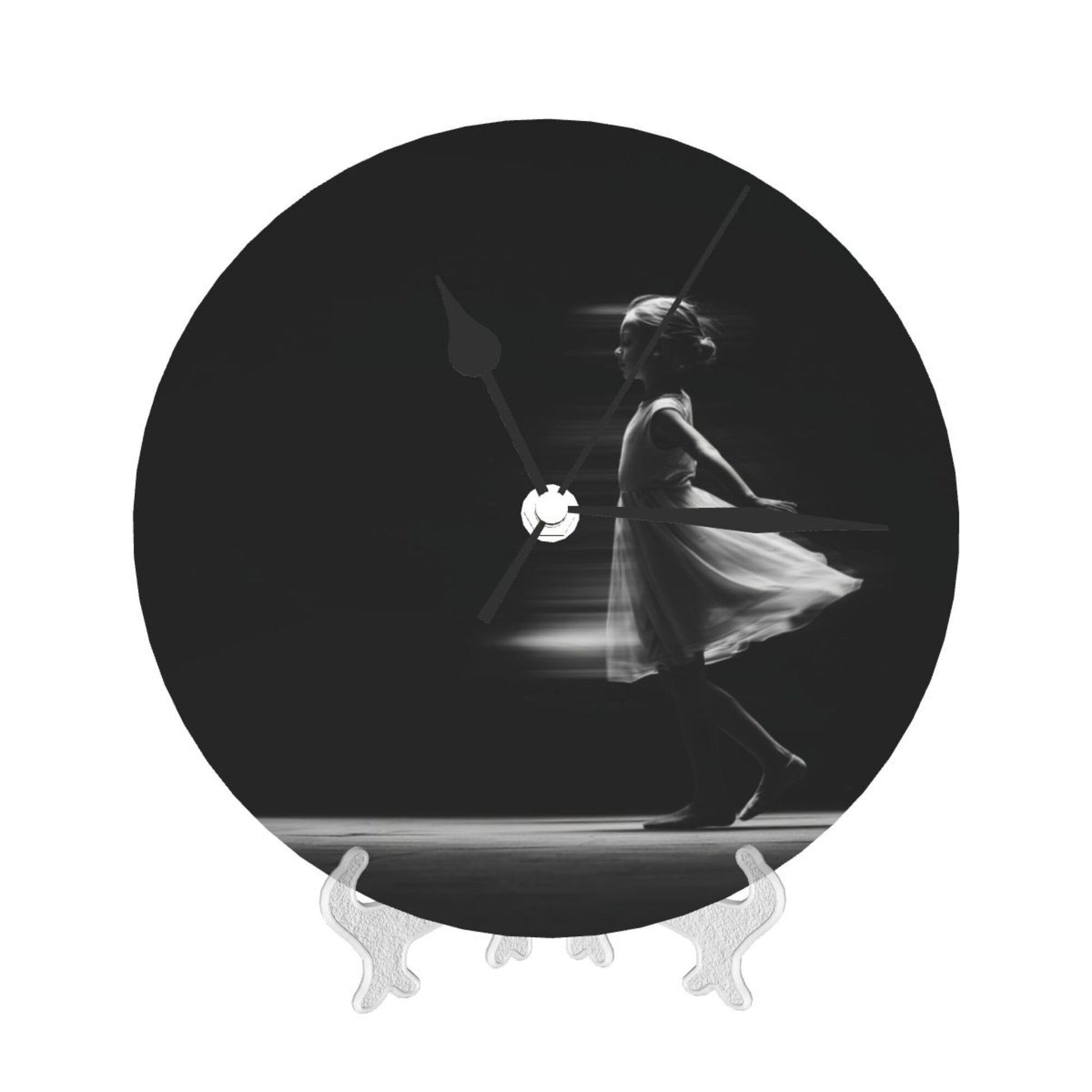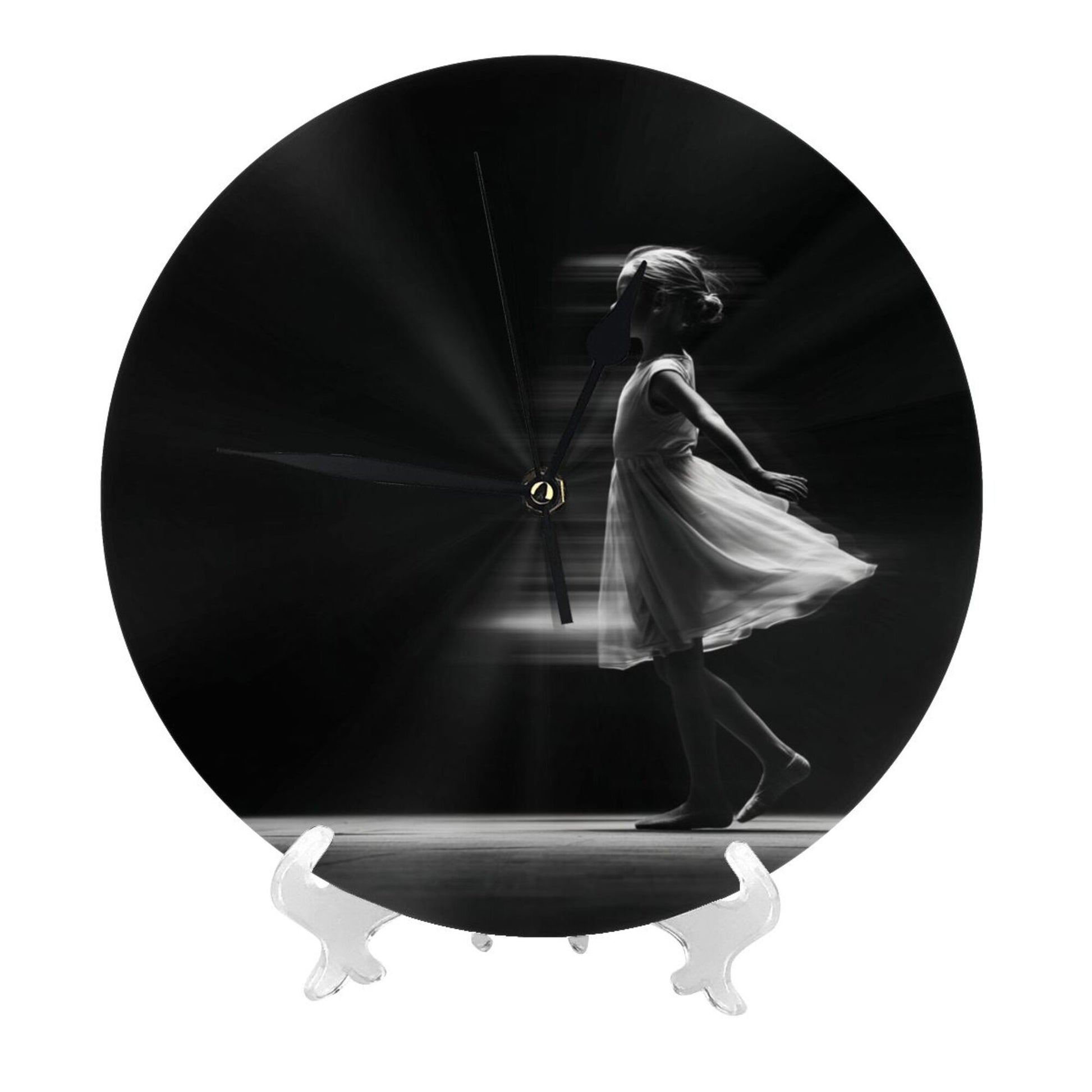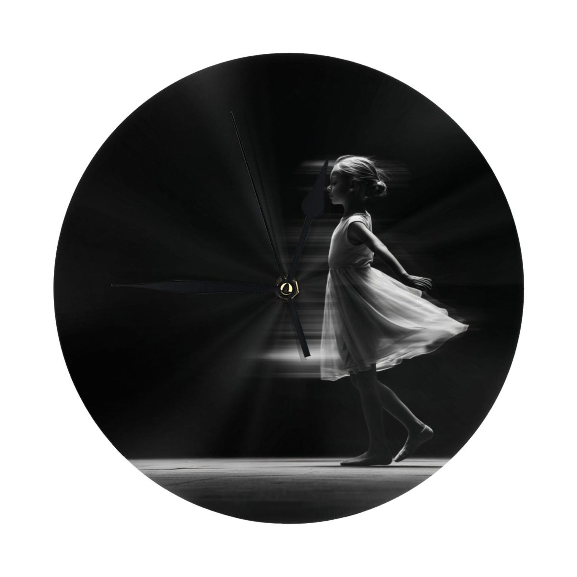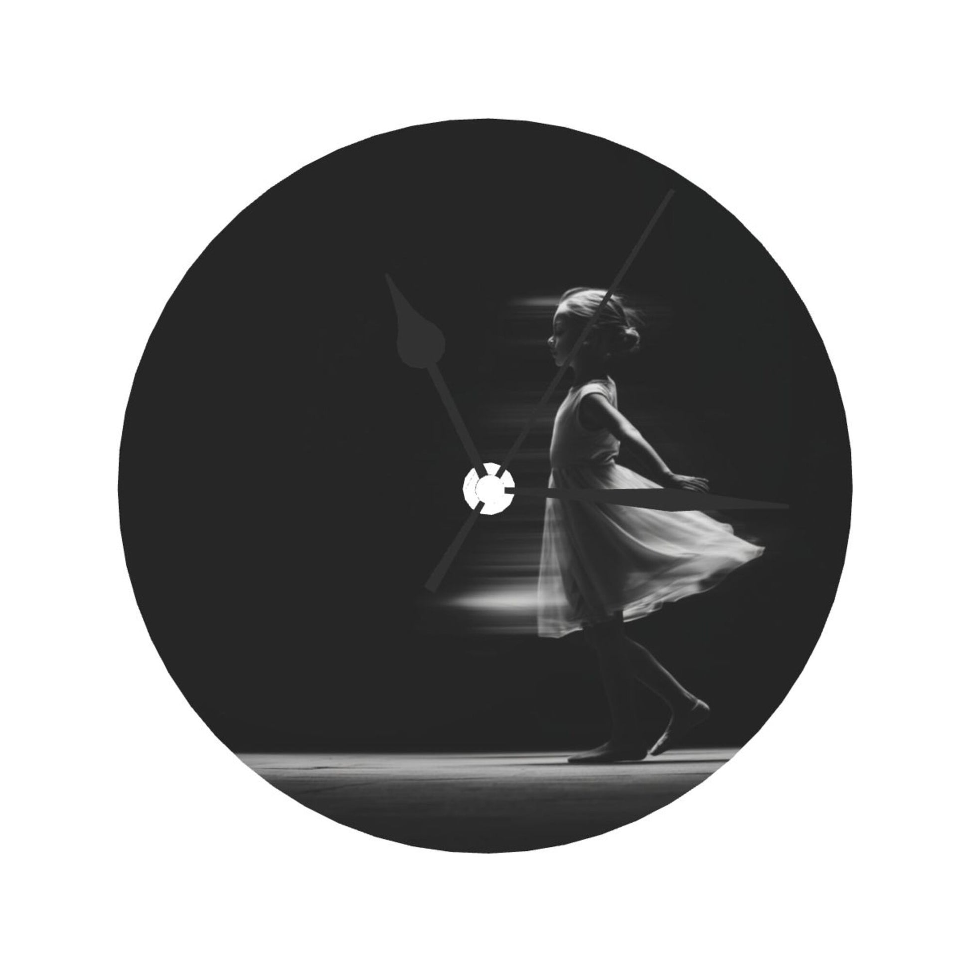 Artistic Design:The clock face presents an artistic scene of “dynamic silhouette of a dancing girl”. The black - and - white tone combined with light and shadow effects seems to capture the moment of the dancer’s light and graceful movement, conveying an elegant and flexible artistic atmosphere. Hung in the living room, it adds an artistic style to the space; placed in the bedroom, it creates a quiet and poetic resting environment, suitable for various decoration styles such as modern simplicity and artistic light luxury, making the time carrier a part of home art.