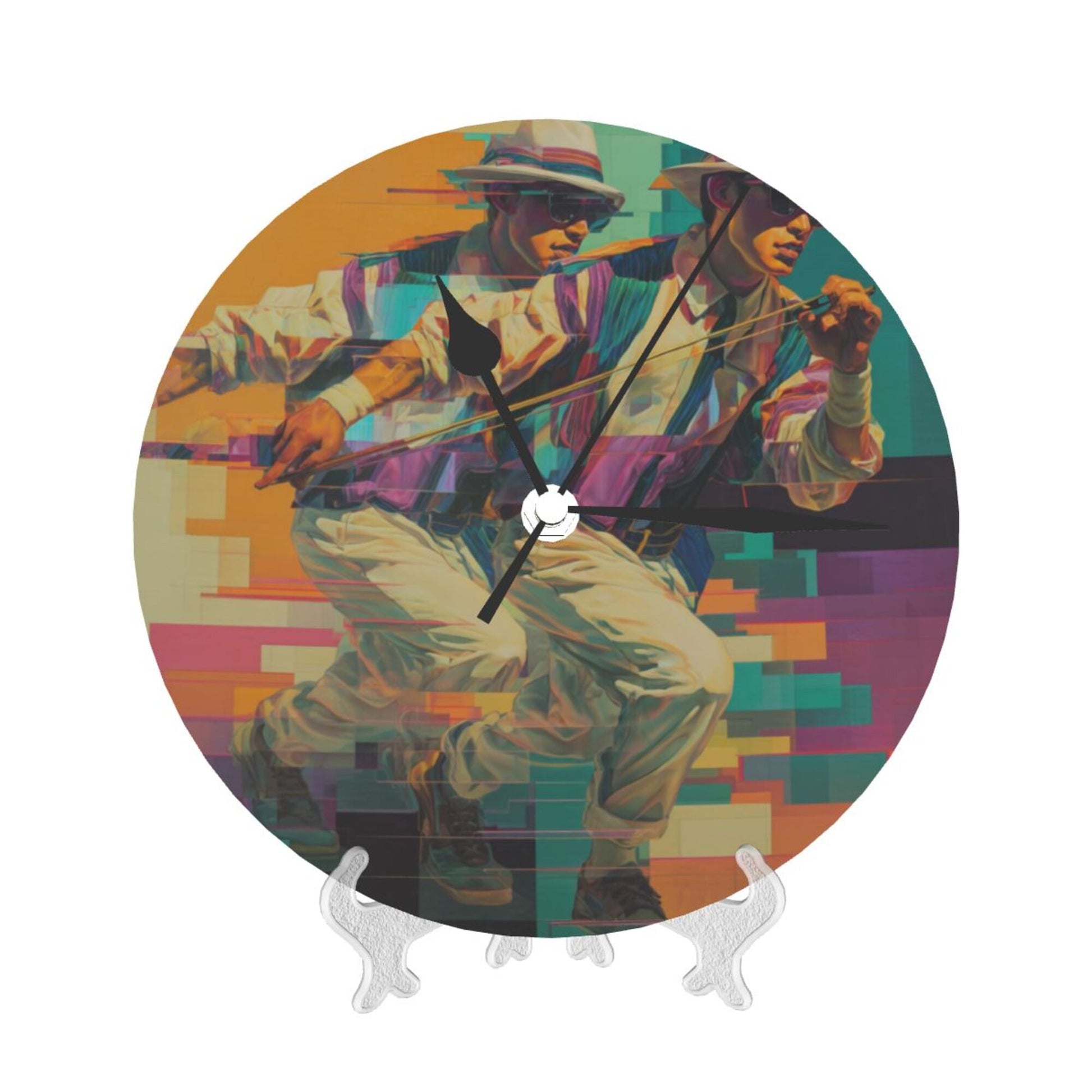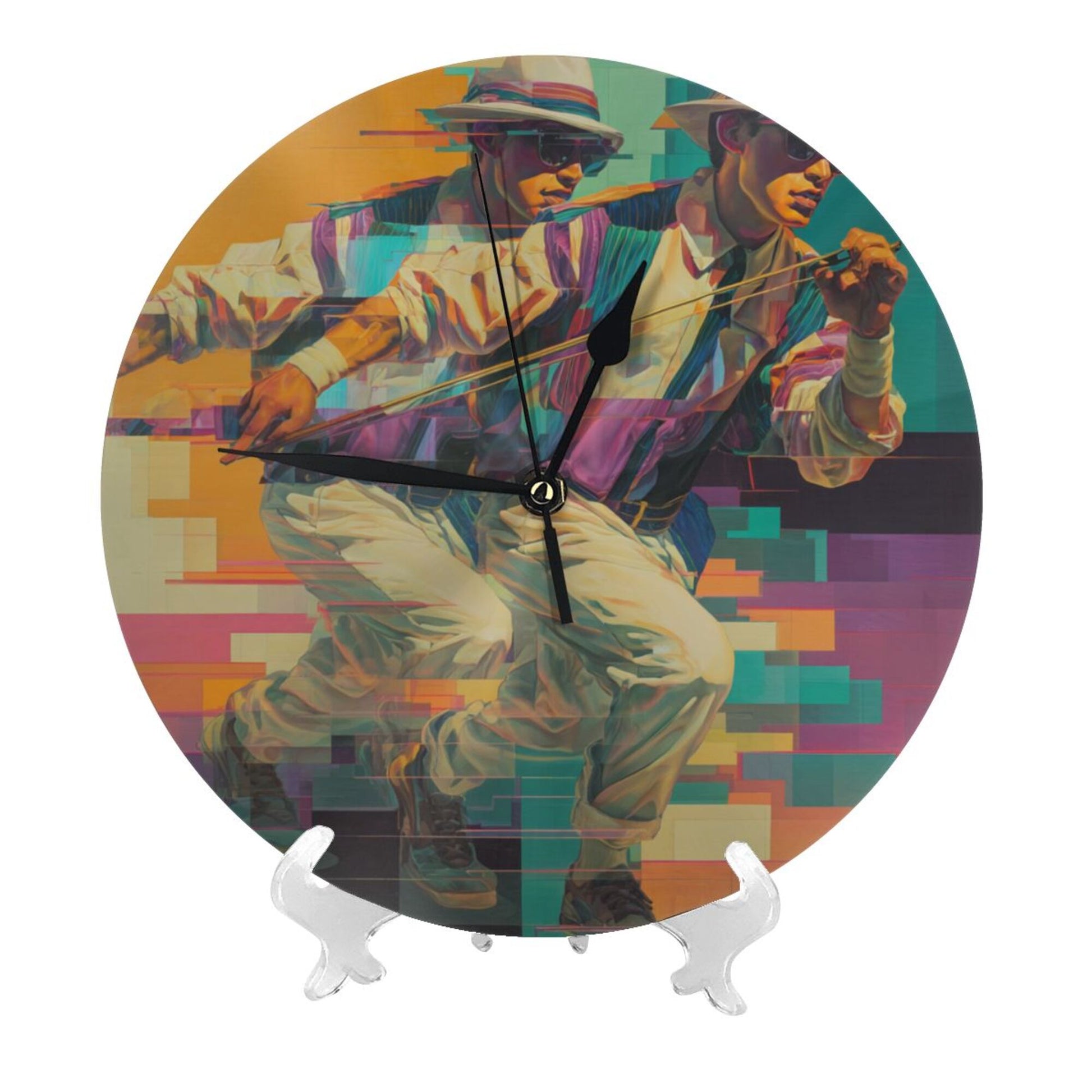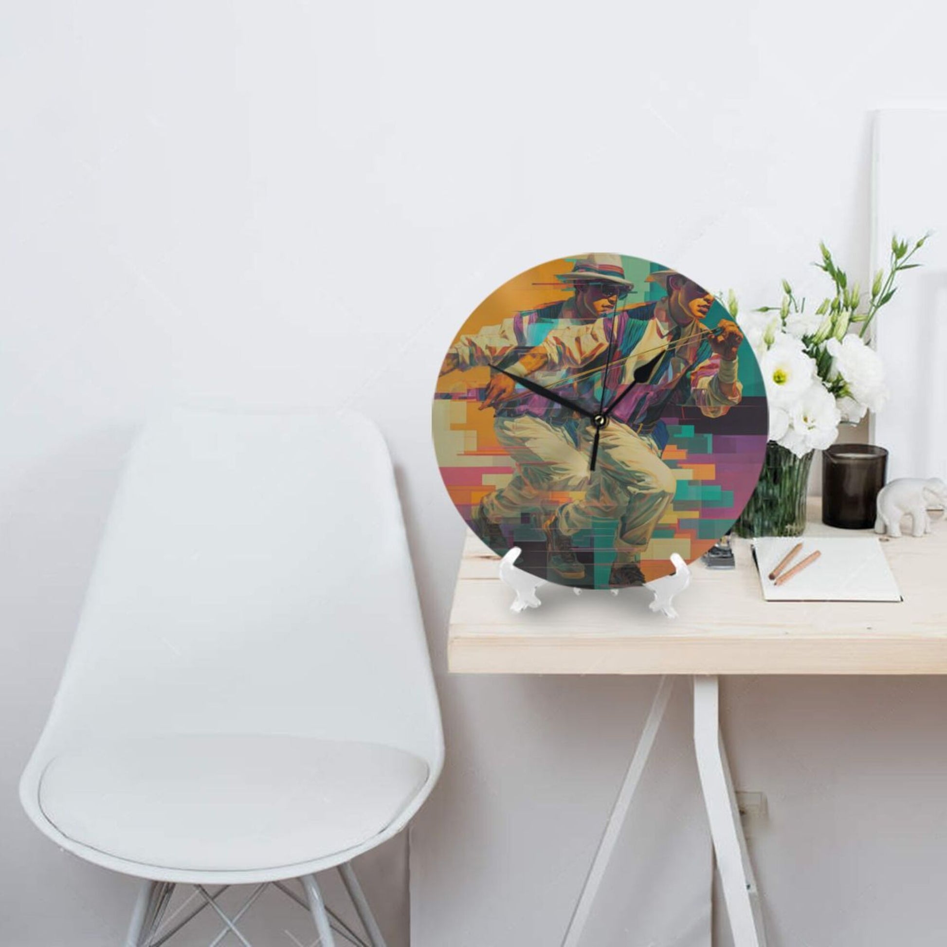 Artistic Design:The clock face presents a scene of “cyberpunk - style character's dynamic posture”. Through the interweaving of gorgeous colors and geometric lines, it conveys a trendy and avant - garde artistic temperament. Hung in the living room, it is an eye - catching focus to showcase personality, taste, and space style; placed in the study, it injects trendy inspiration into thinking and creation, suitable for decoration styles such as modern simplicity, cyberpunk theme, and artistic industrial style, allowing time recording to deeply integrate with the enthusiasm for trendy art.
