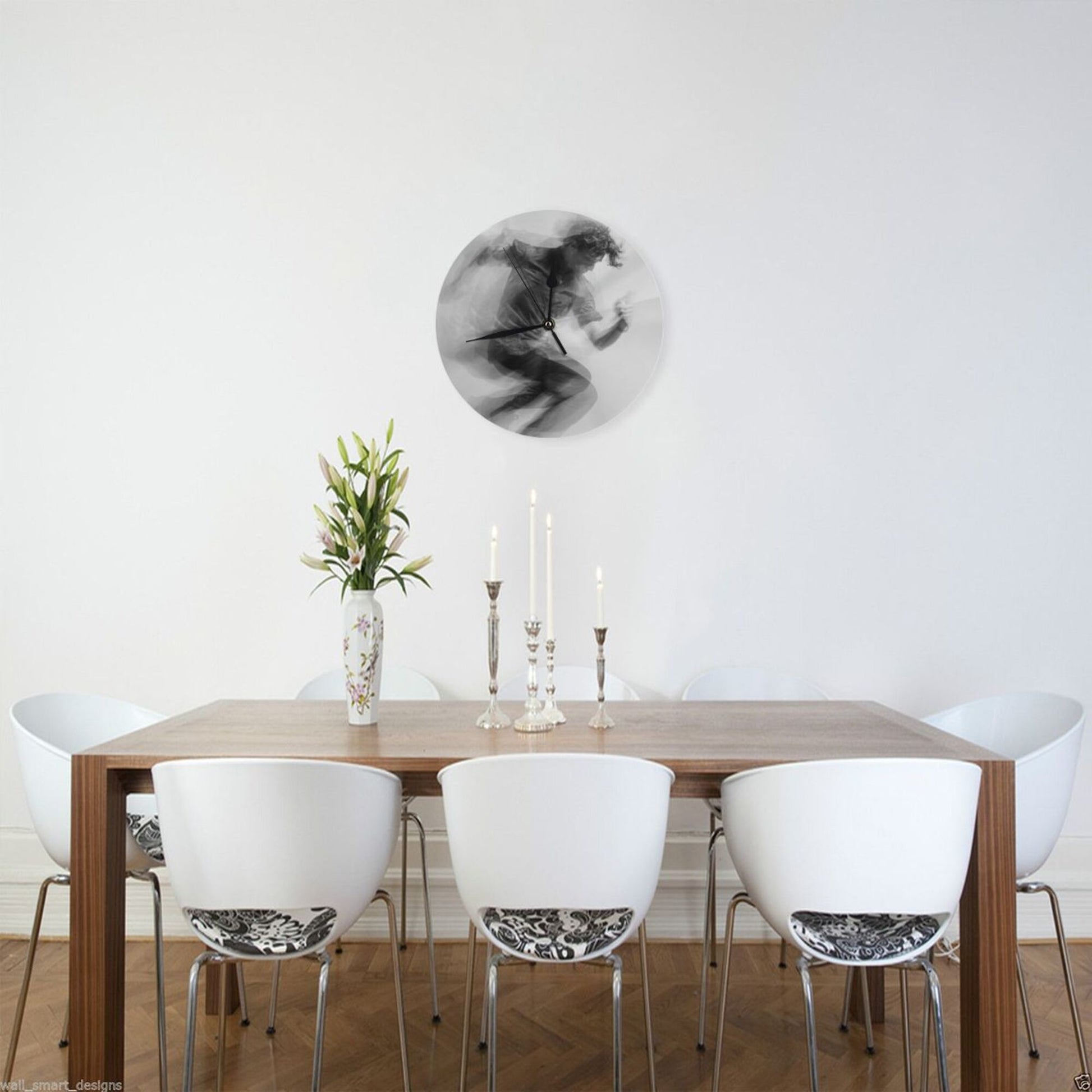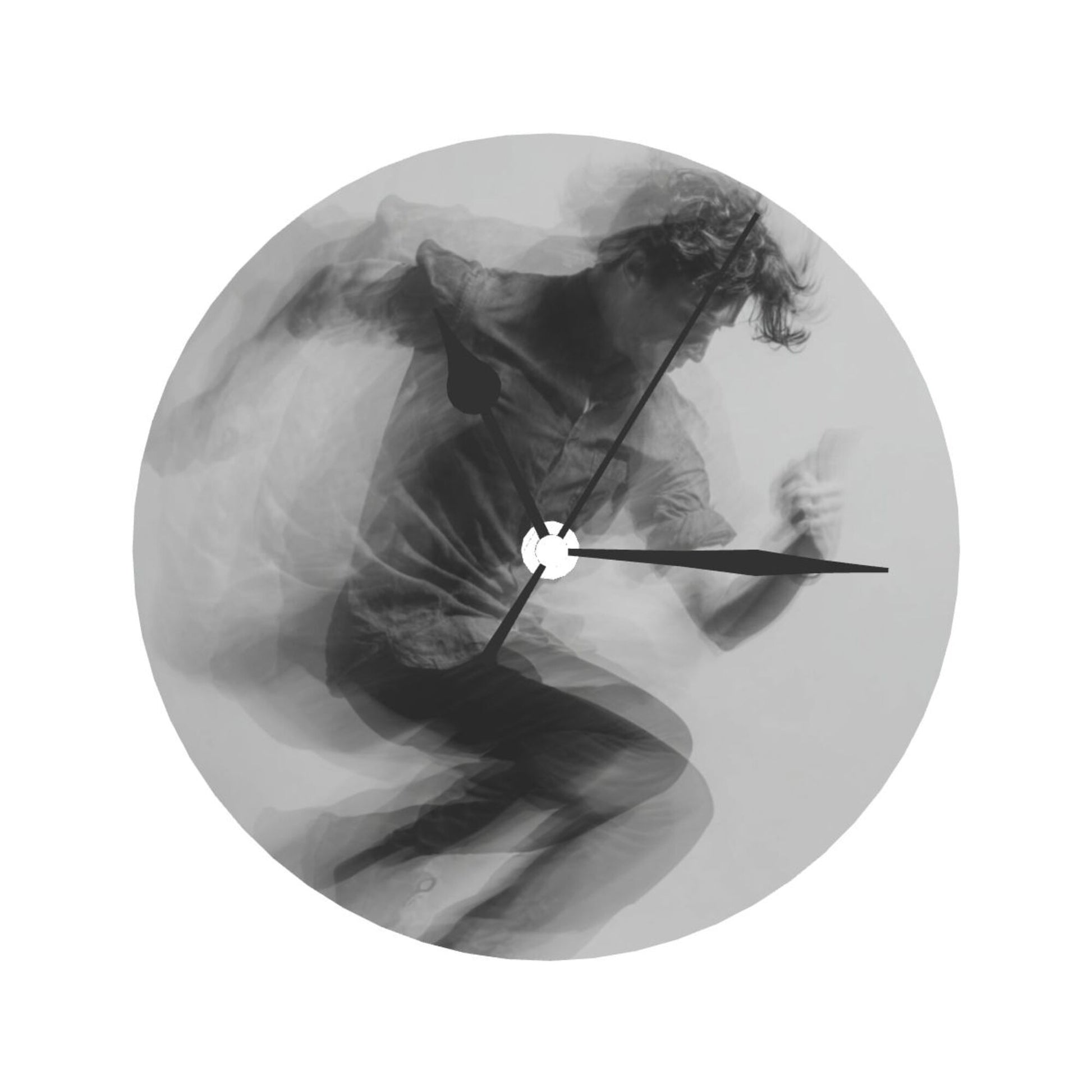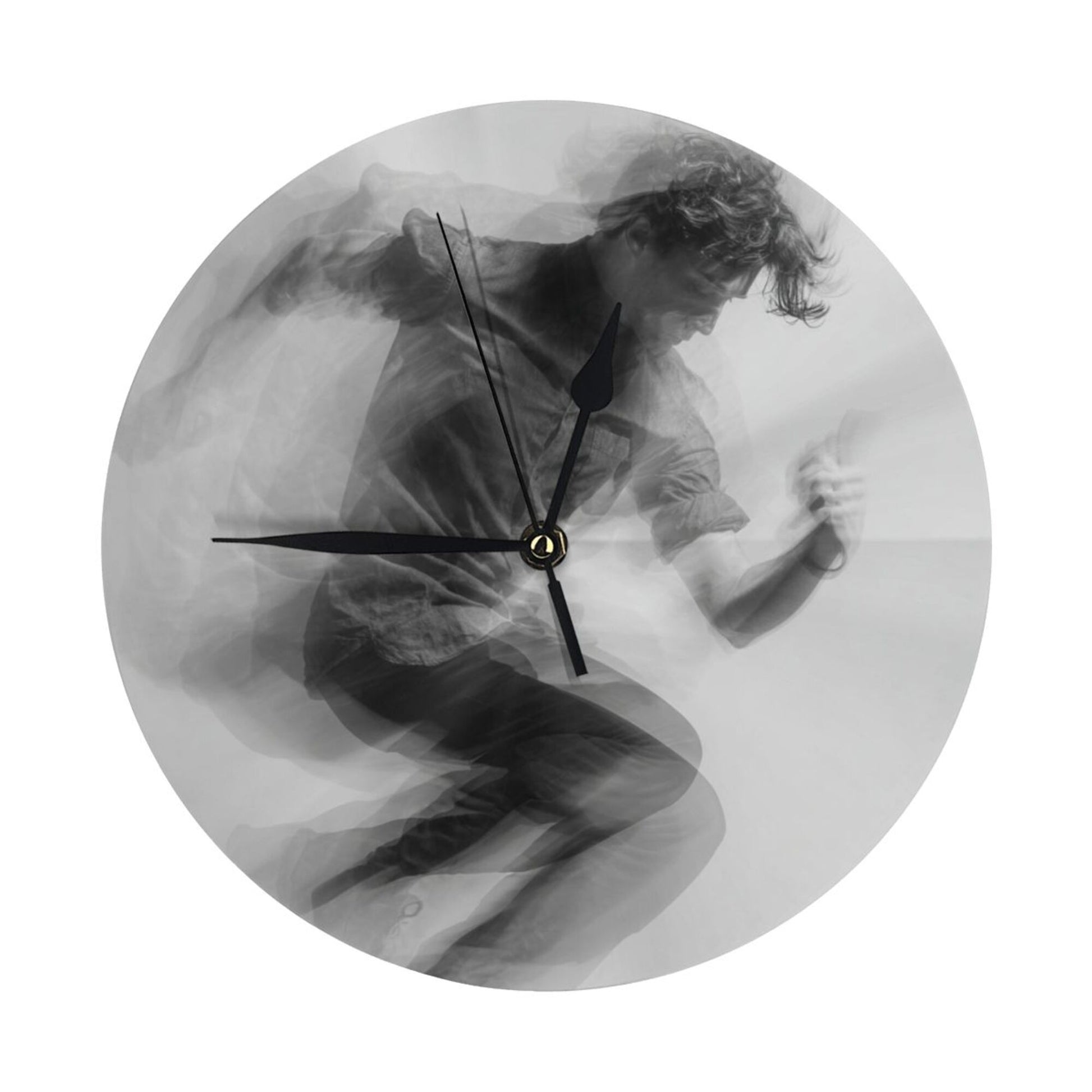 Artistic Design:The clock face presents a “dynamic blurred portrait” effect. The black - and - white color tone enhances the sense of movement flow, conveying a vibrant and free artistic atmosphere. Hung in the living room, it is a visual highlight to showcase personality and artistic taste; placed in the study, it injects a flexible atmosphere into the thinking and creation space, suitable for decoration styles such as modern simplicity, artistic avant - garde, and industrial style, allowing time recording to deeply integrate with the dynamic beauty of art.
