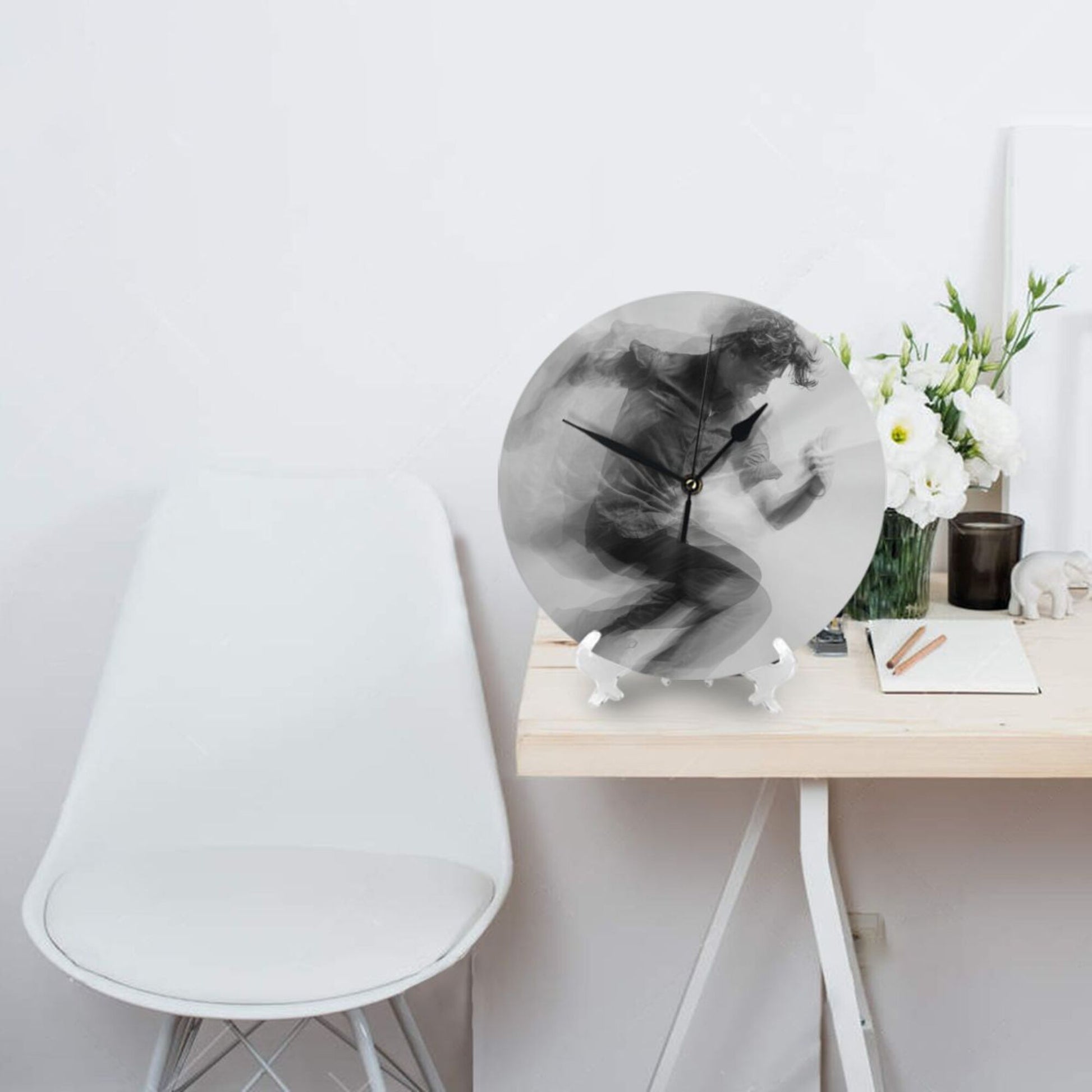 Material & Craftsmanship:The clock face is made of high - quality printing materials, with delicate colors and realistic dynamic effects. The movement tension of the portrait is accurately presented, not easy to fade after long - term use; the frame and stand are made of durable materials, ensuring the overall structure is stable, can withstand the test of time, and let the artistic charm of the dynamic portrait and practical functions accompany for a long time, always awakening the love for a vibrant life and artistic exploration.