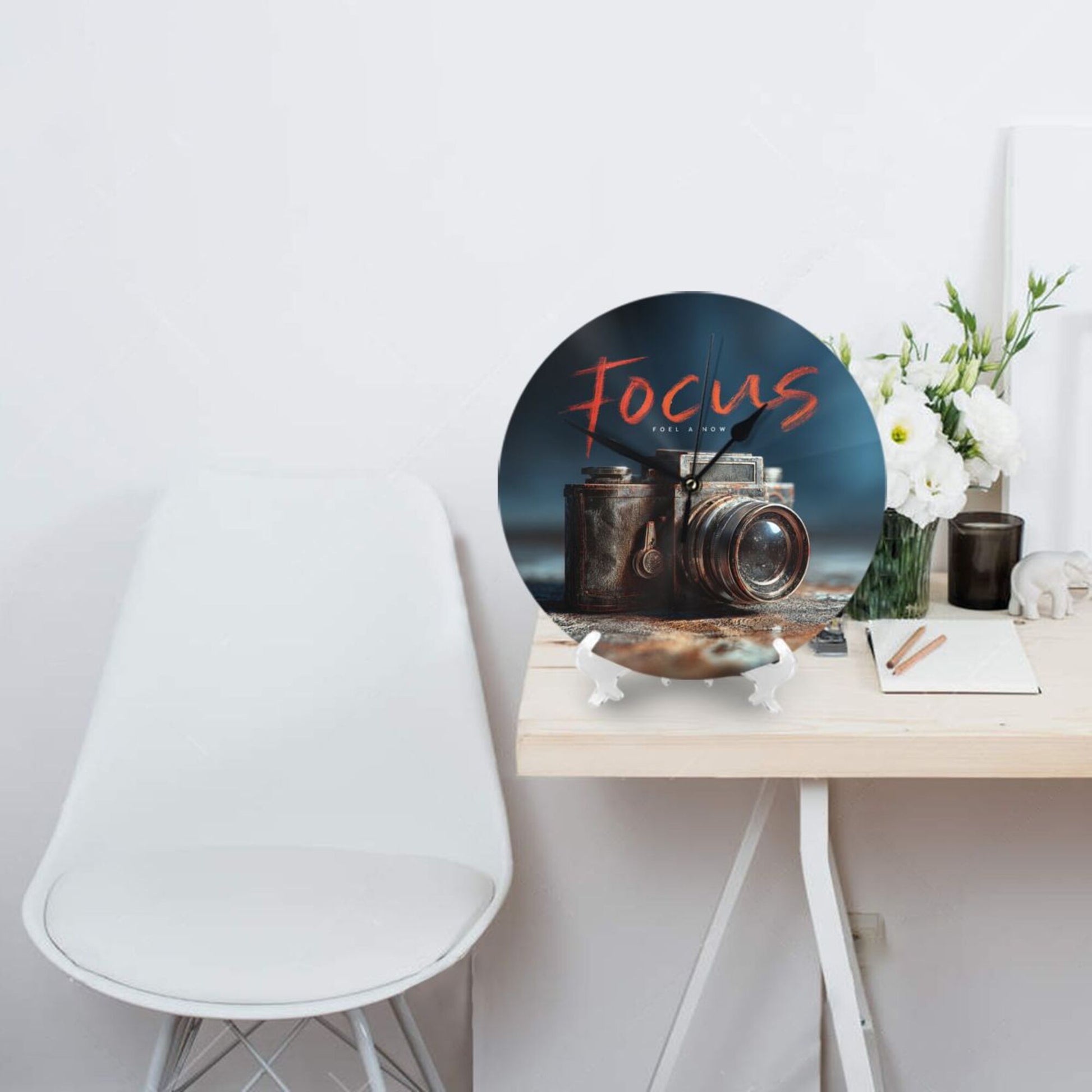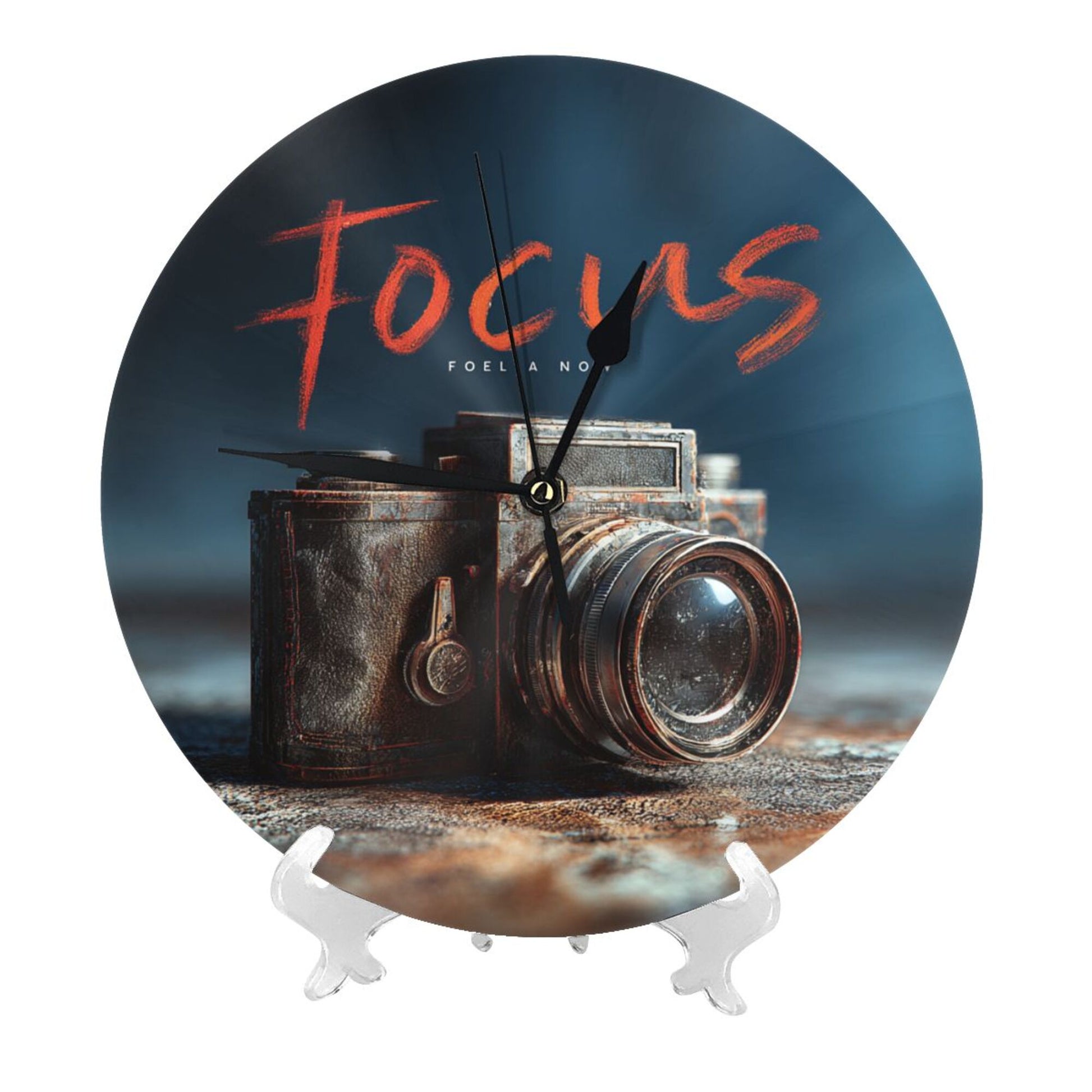 Material & Craftsmanship:The clock face is made of high - quality printing materials, with high color reproduction and clear details. The retro texture of the camera and the artistic brushstrokes of the text are accurately presented, not easy to fade after long - term use; the frame and stand are made of durable materials, ensuring the overall structure is stable, can withstand the test of time, and let the artistic charm of the retro camera and practical functions accompany for a long time, always evoking the love for a “Focus (concentrated)” life.