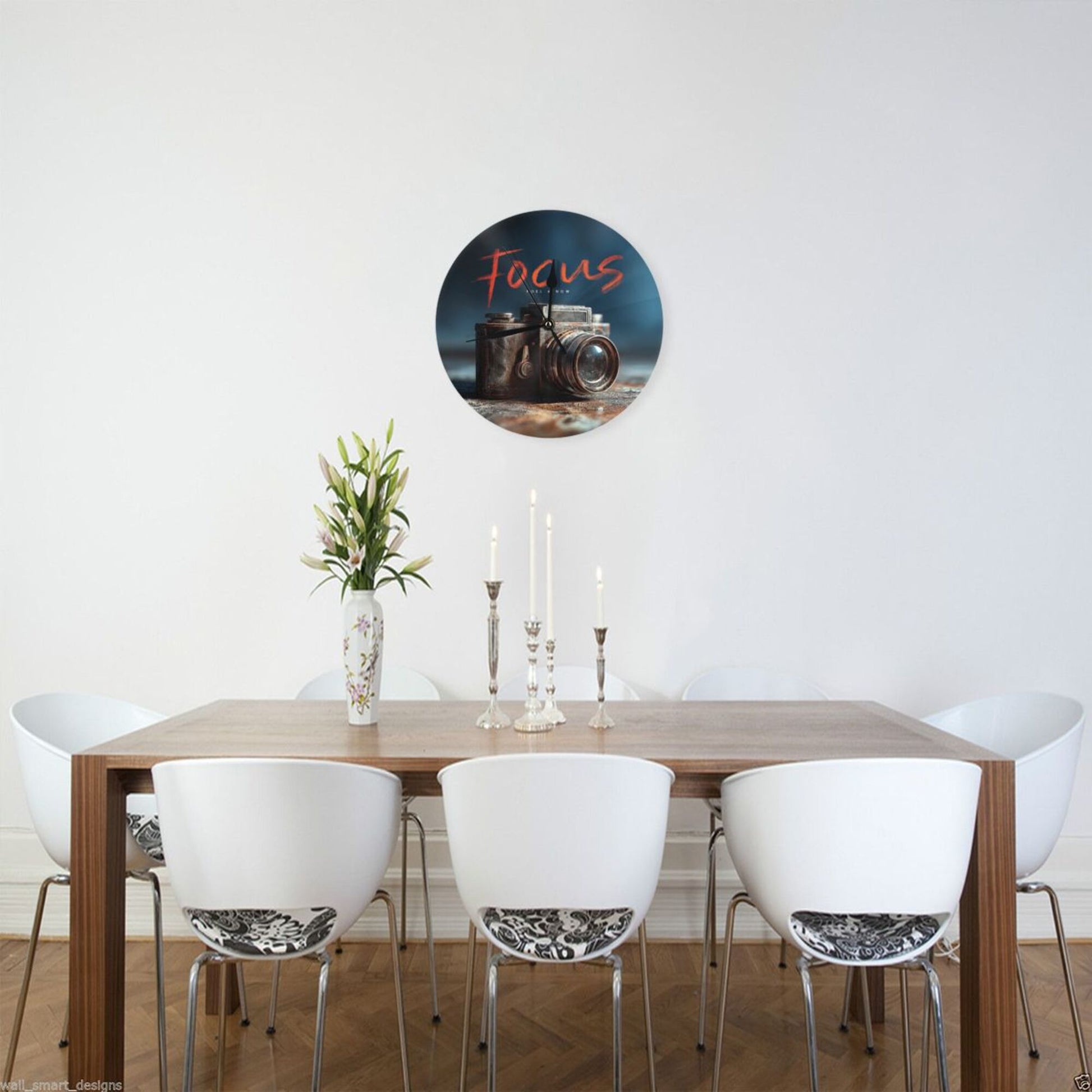 Round Wall Clock with Retro Camera “Focus” Art Scene, Silent Decorative Clock for Photographers’ Study & Living Room (Diameter 25cm)
