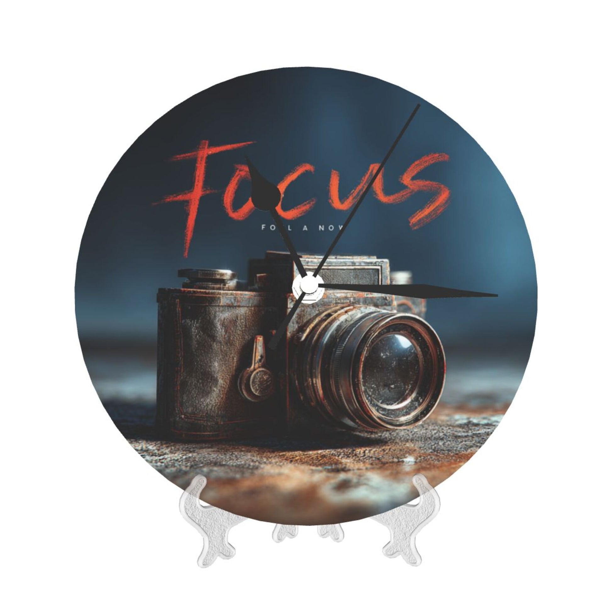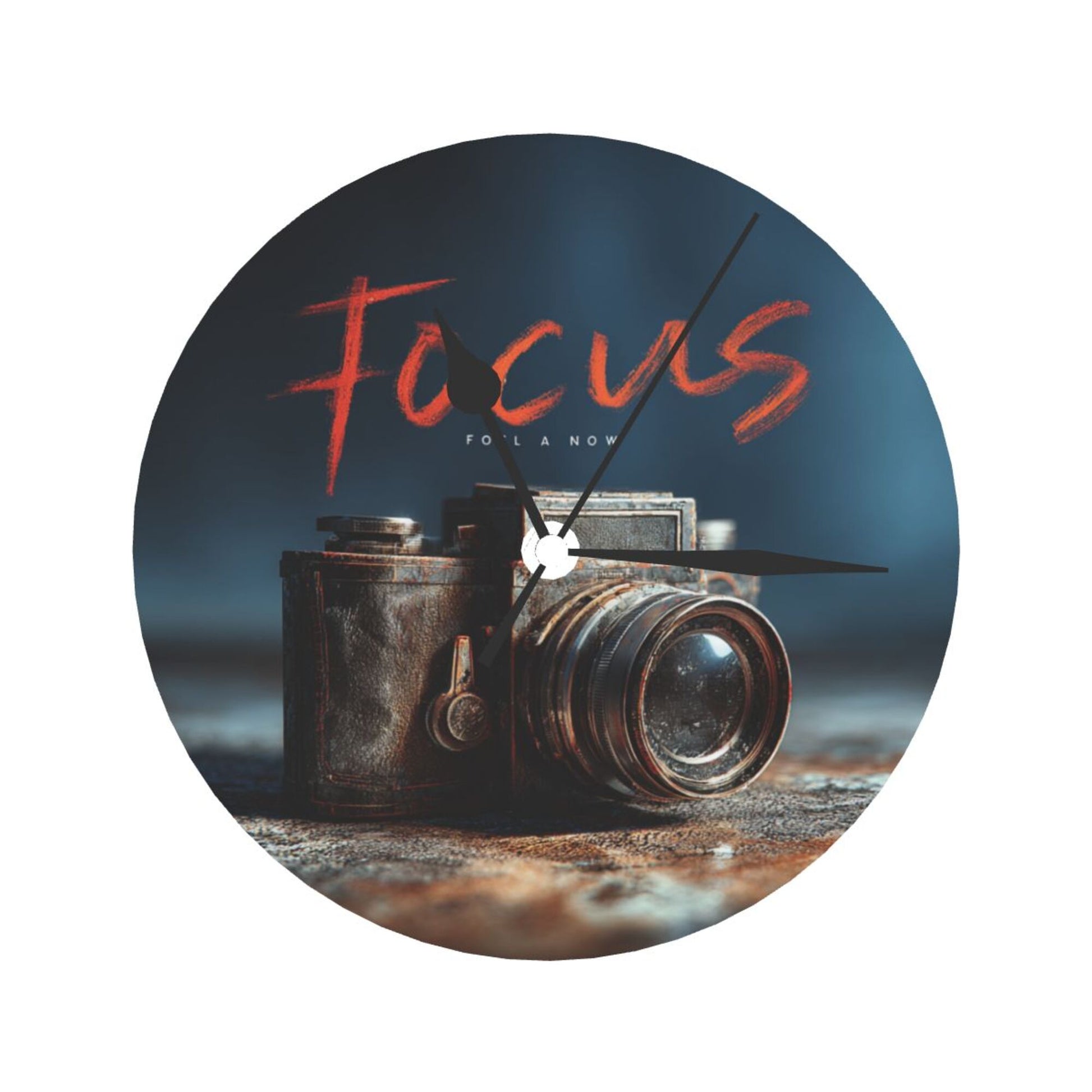 Thematic Design:The clock face presents a design of “a vintage - looking camera + hand - written ‘Focus’ text”. The dark background highlights the texture of the camera and the tension of the text, conveying the photography spirit of focus and capturing moments. Hung in the living room, it is an artistic symbol to showcase personality and love for photography; placed in the study, it injects a literary atmosphere into the creation and reading space, suitable for scenarios such as industrial style, retro style, and art studios, allowing time recording to resonate with photography feelings.